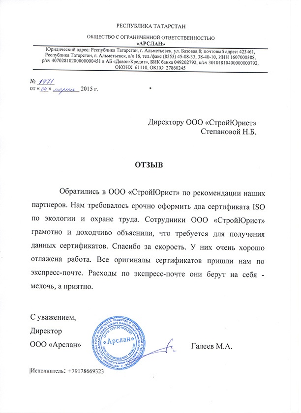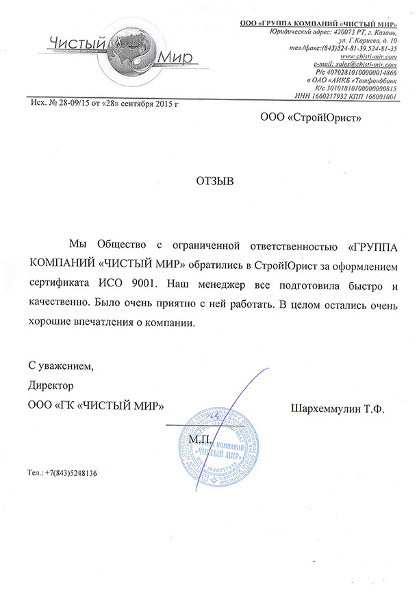 Отзывы клиентов "СтройЮрист" по ISO в Братске