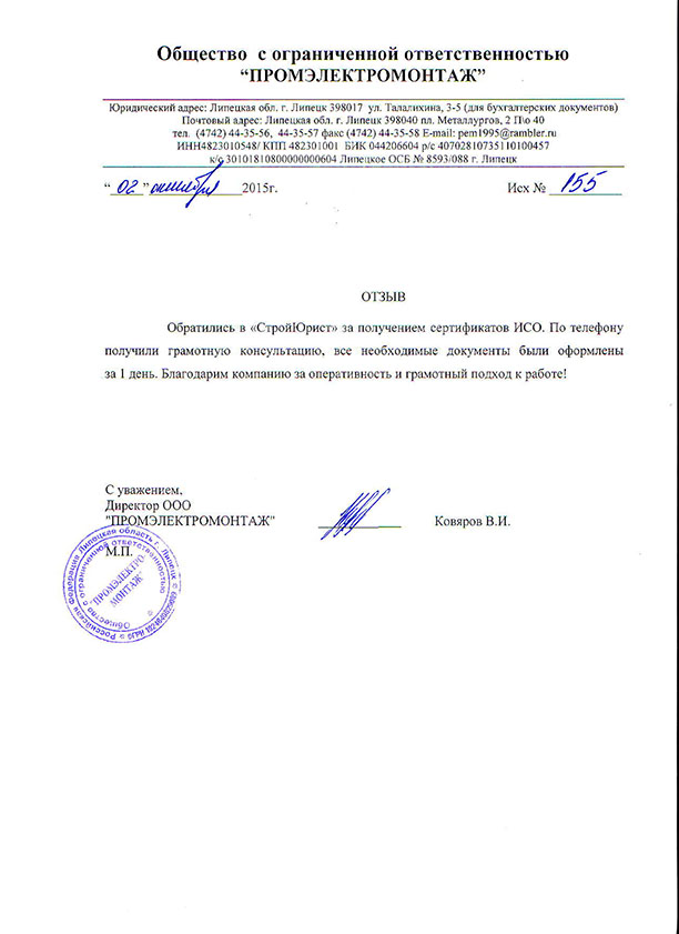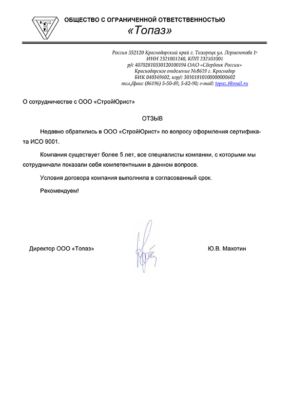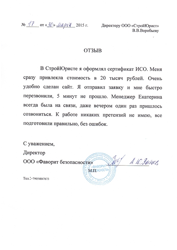Отзывы клиентов "СтройЮрист" по ISO в Братске
