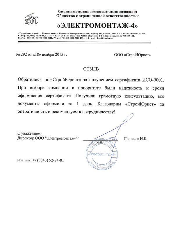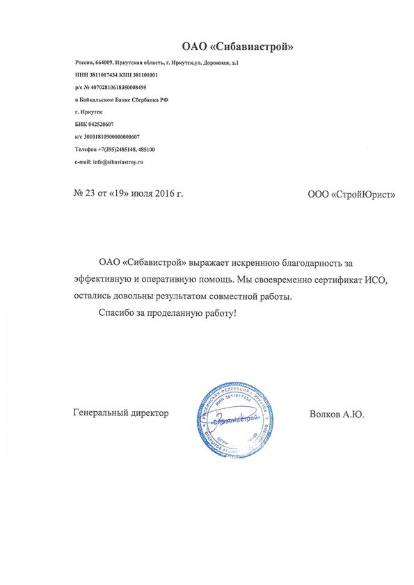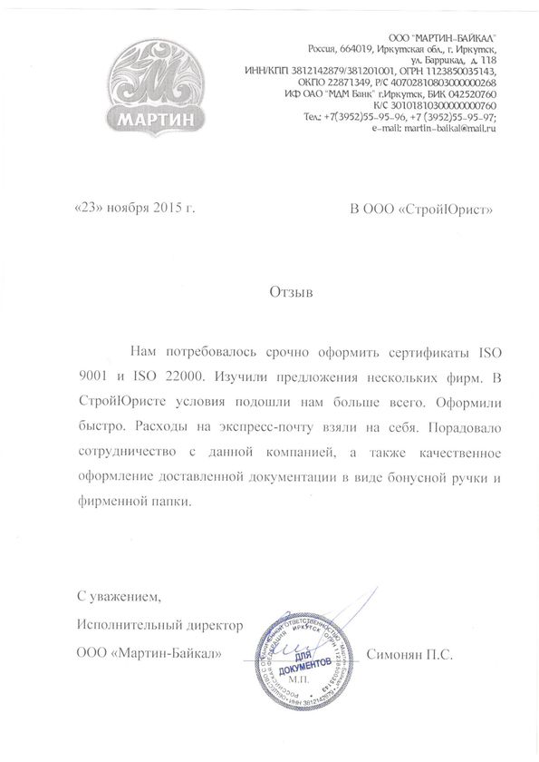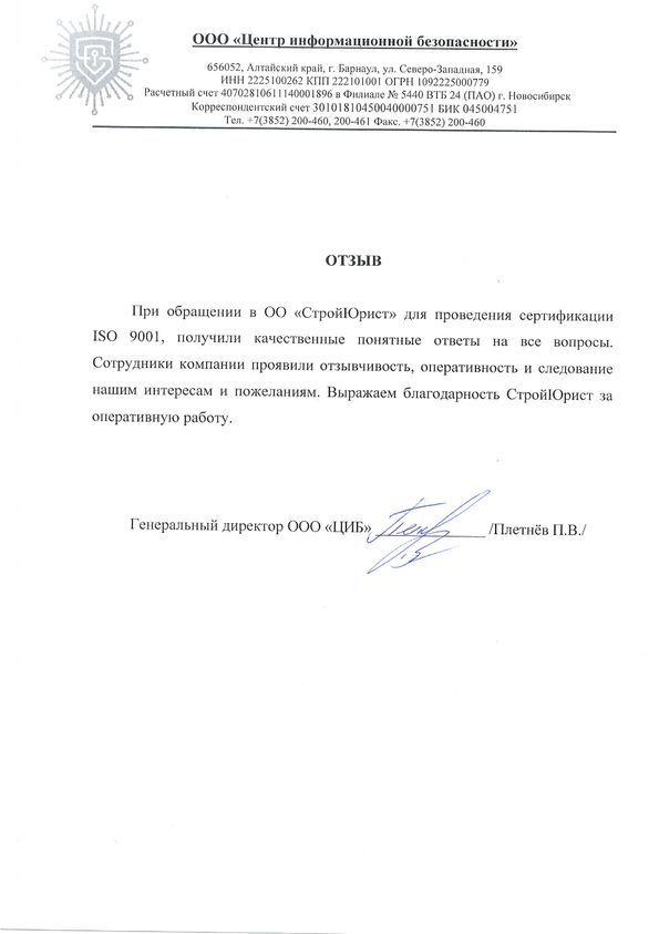 Отзывы клиентов "СтройЮрист" по ISO в Братске