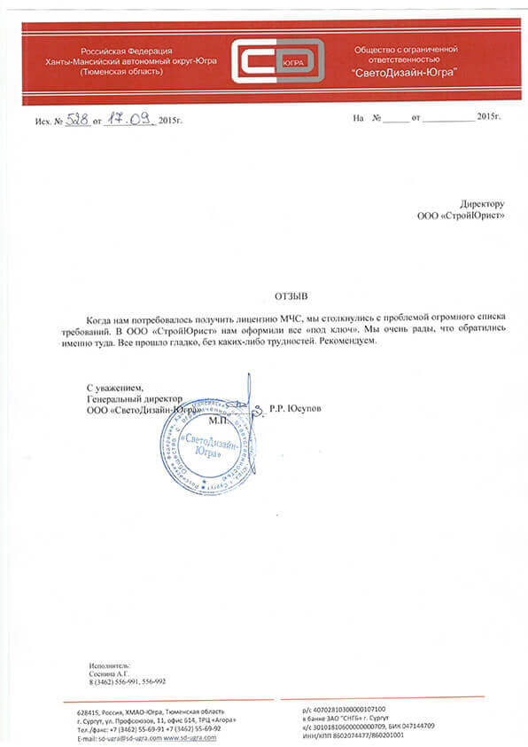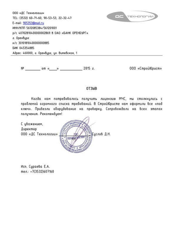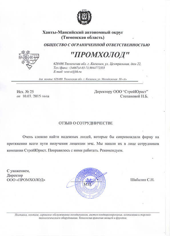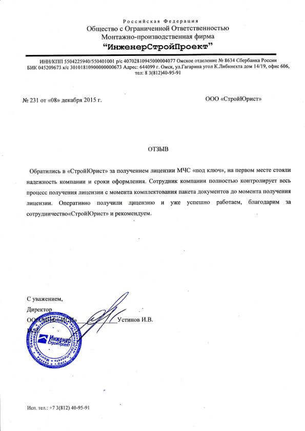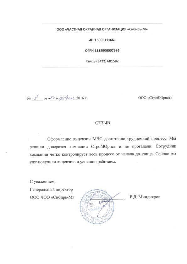 Отзывы клиентов "СтройЮрист" по лицензированию МЧС в Братске