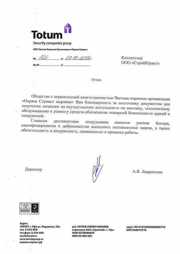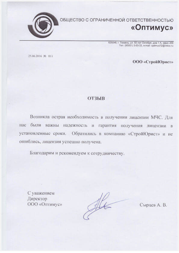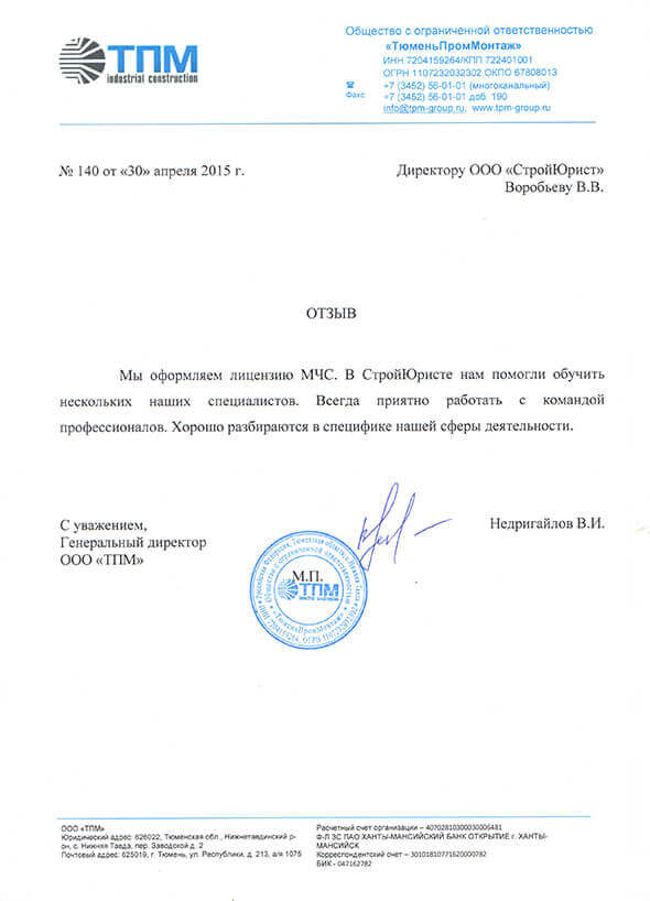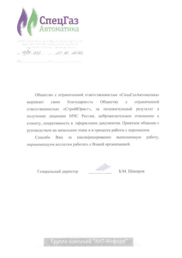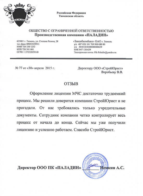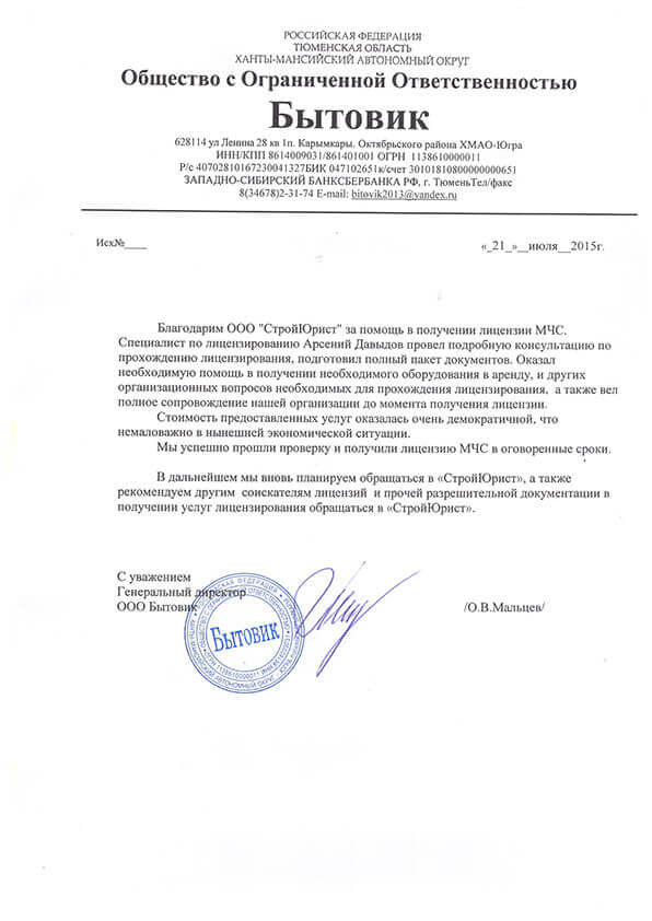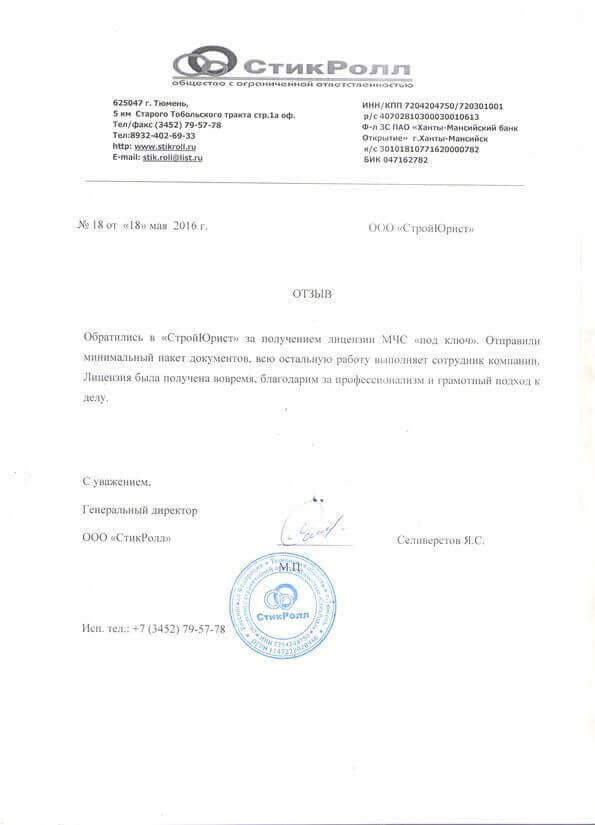 Отзывы клиентов "СтройЮрист" по лицензированию МЧС в Братске