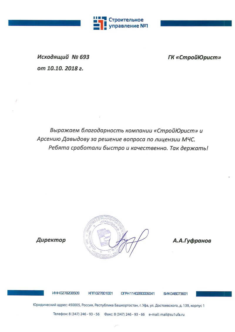 Отзывы клиентов "СтройЮрист" по лицензированию МЧС в Братске