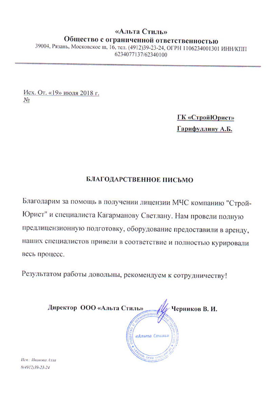Отзывы клиентов "СтройЮрист" по лицензированию МЧС в Братске