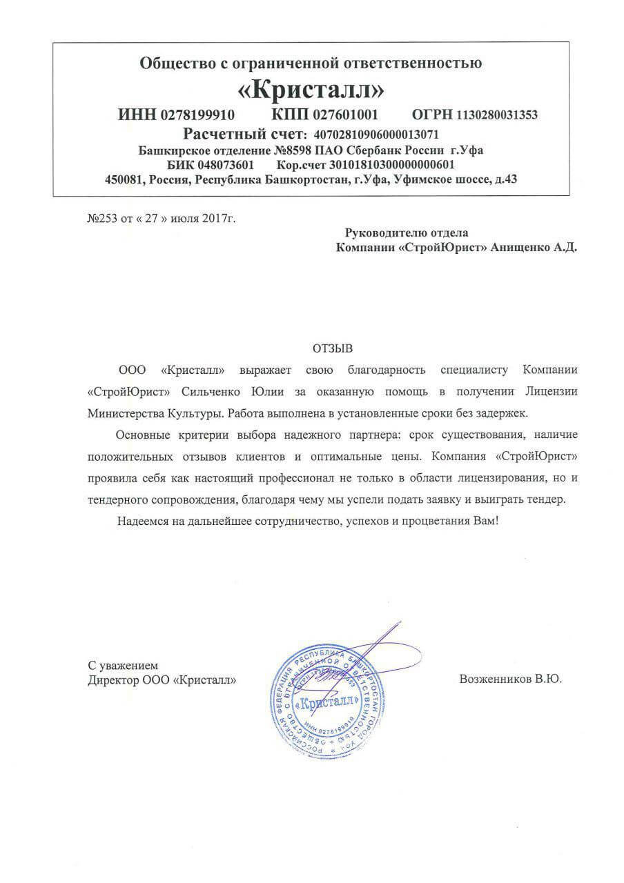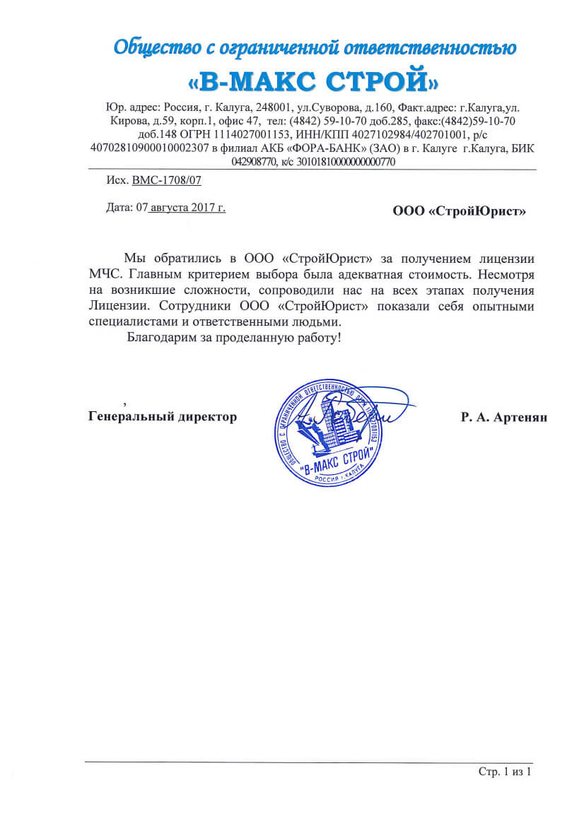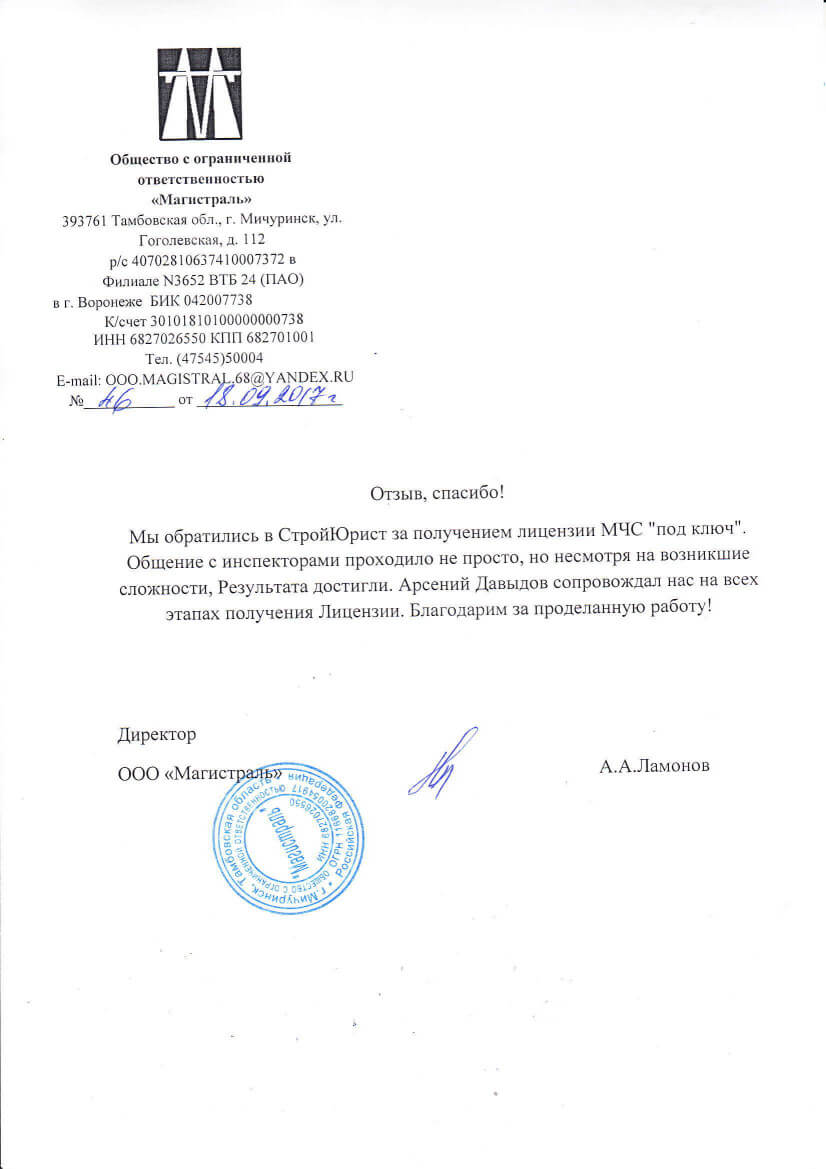 Отзывы клиентов "СтройЮрист" по лицензированию МЧС в Братске