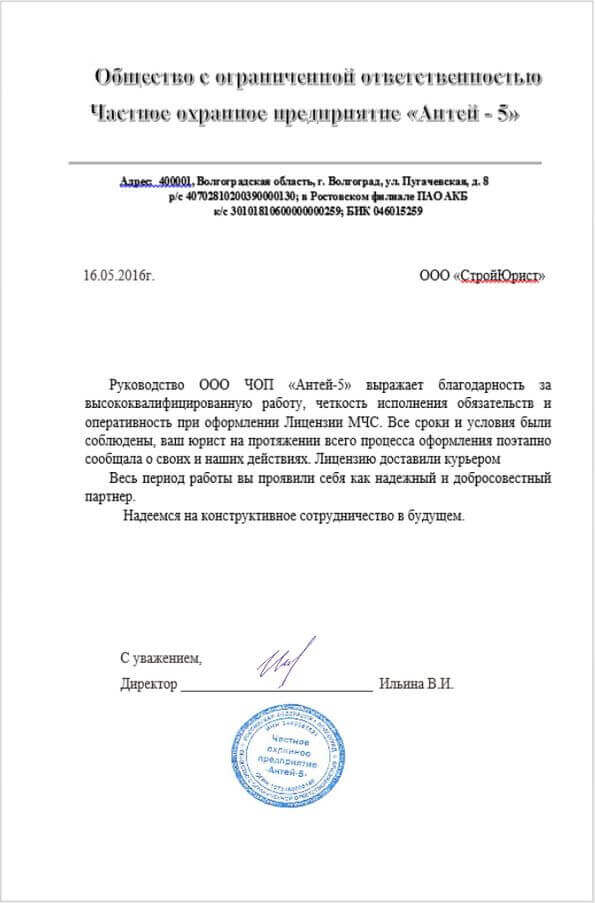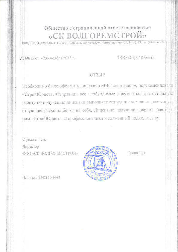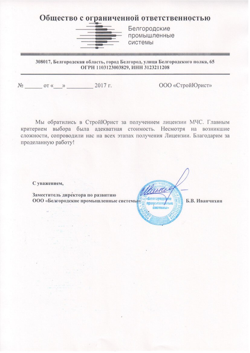 Отзывы клиентов "СтройЮрист" по лицензированию МЧС в Братске