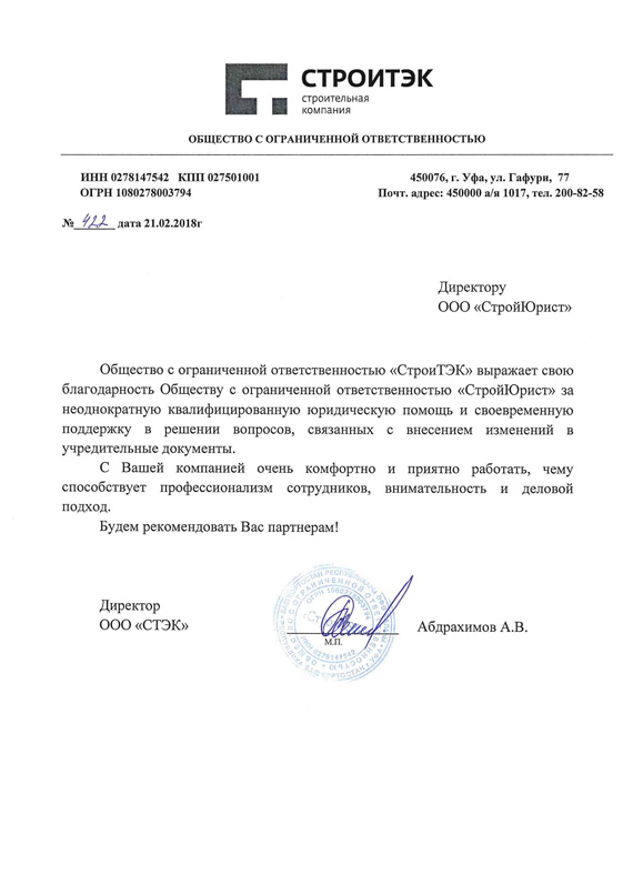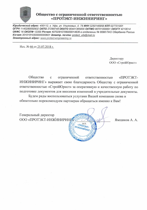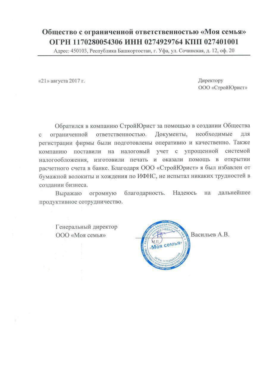 Отзывы клиентов "СтройЮрист" по регистрации фирм в Братске
