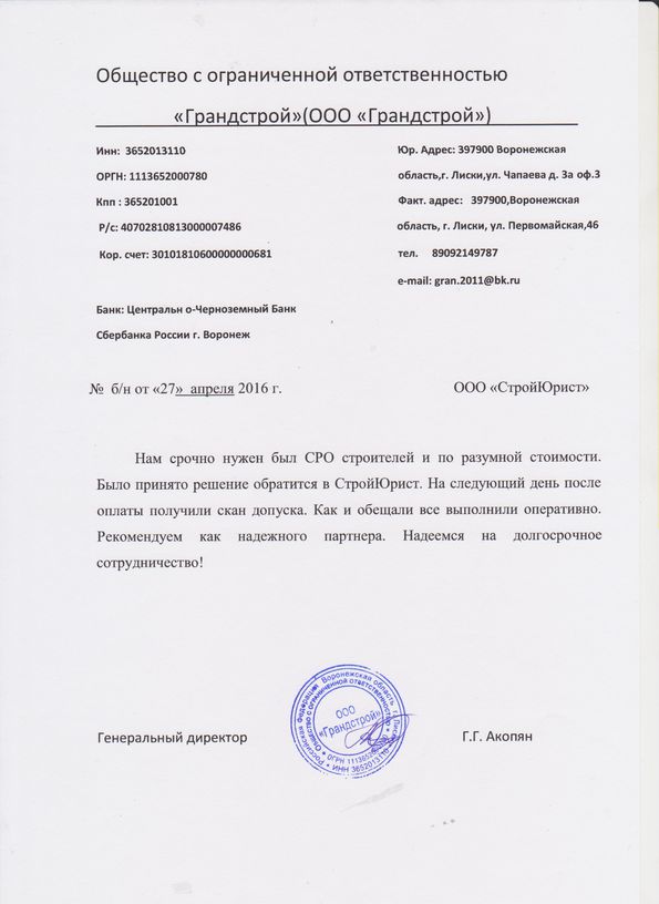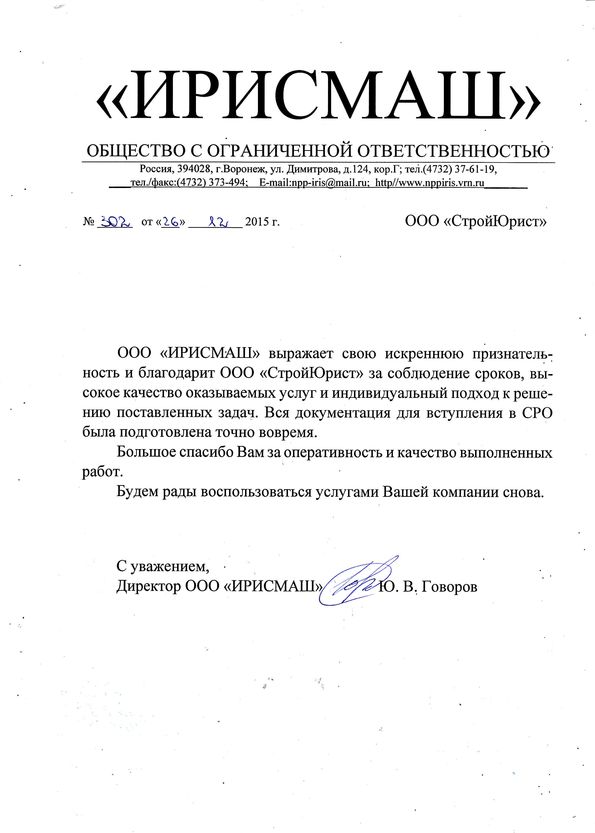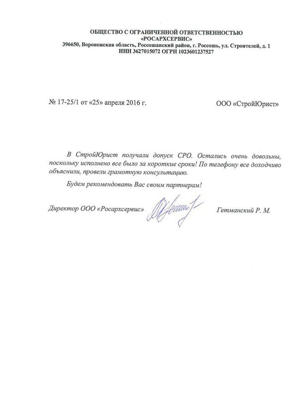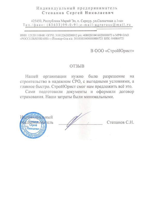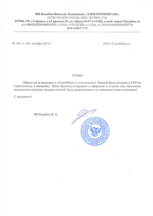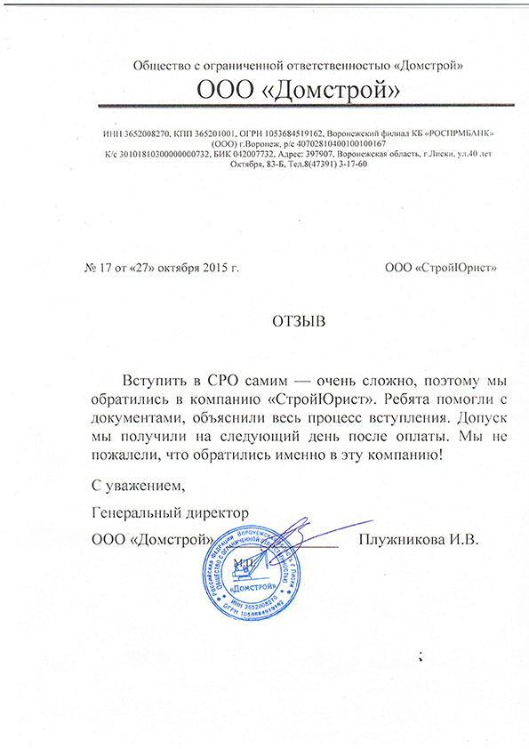 Отзывы клиентов "СтройЮрист" по вступлению в СРО в Братске