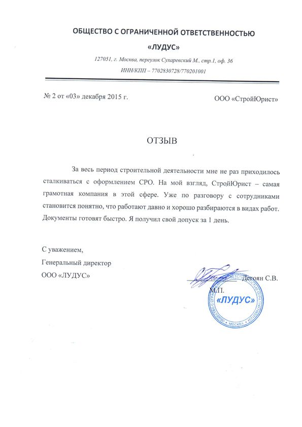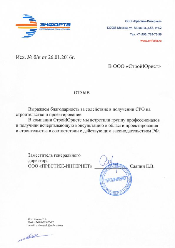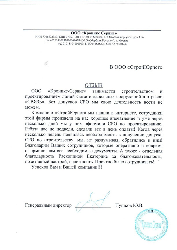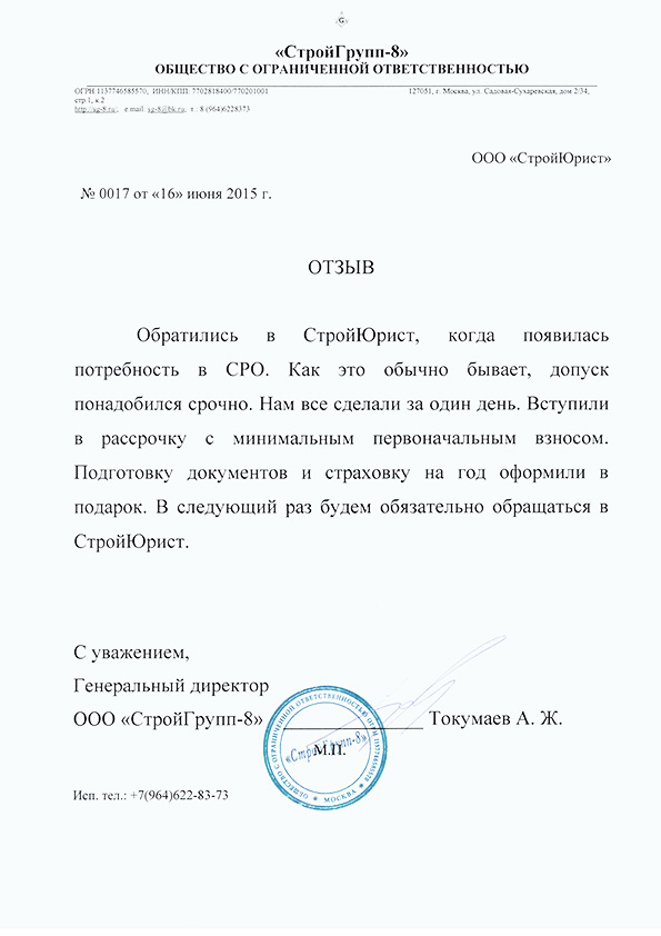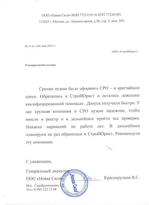 Отзывы клиентов "СтройЮрист" по вступлению в СРО в Братске