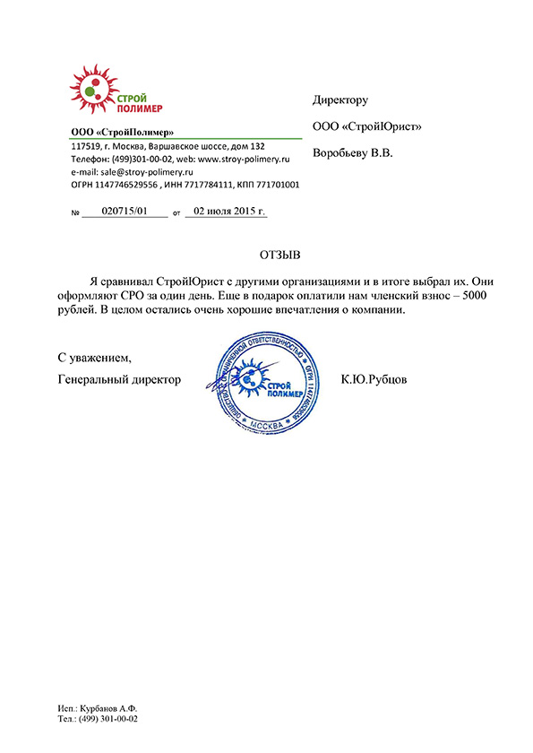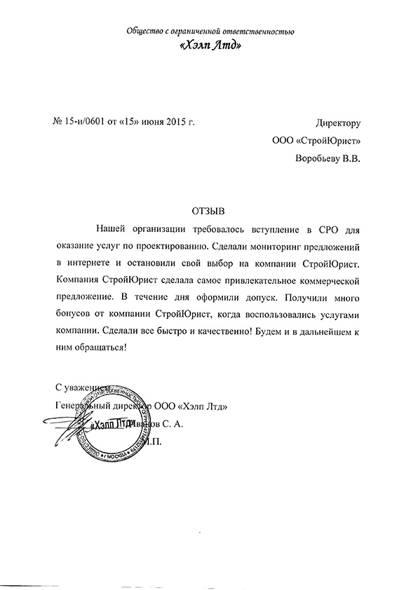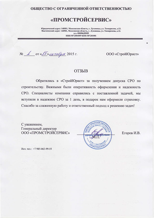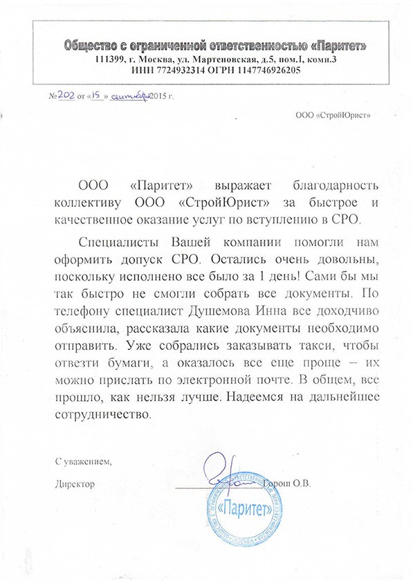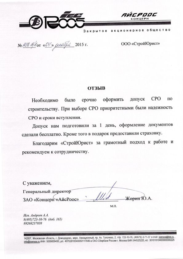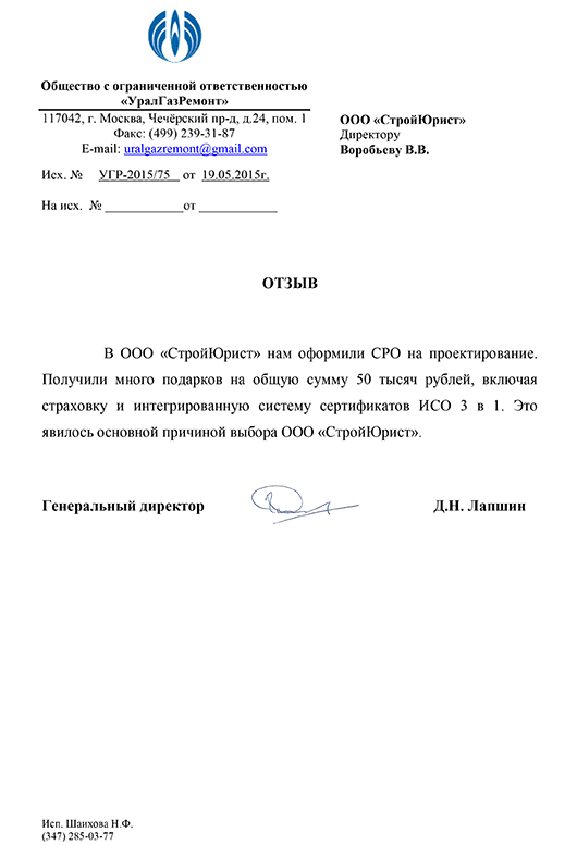 Отзывы клиентов "СтройЮрист" по вступлению в СРО в Братске