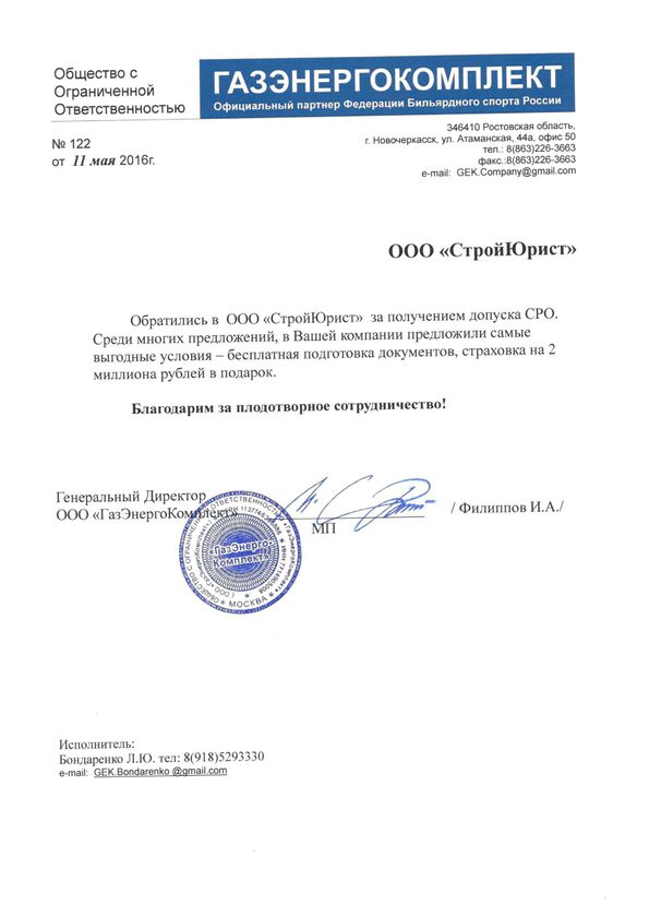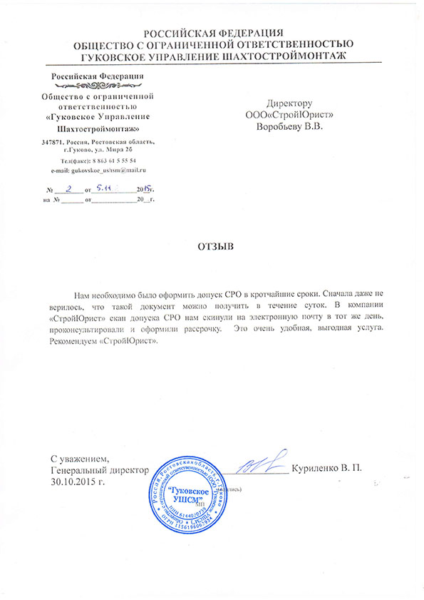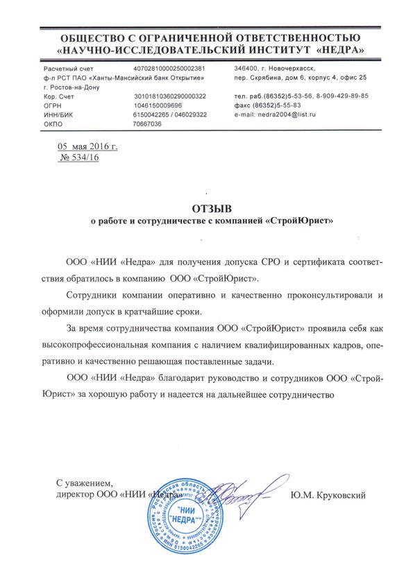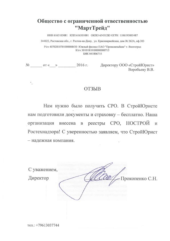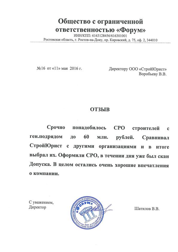 Отзывы клиентов "СтройЮрист" по вступлению в СРО в Братске