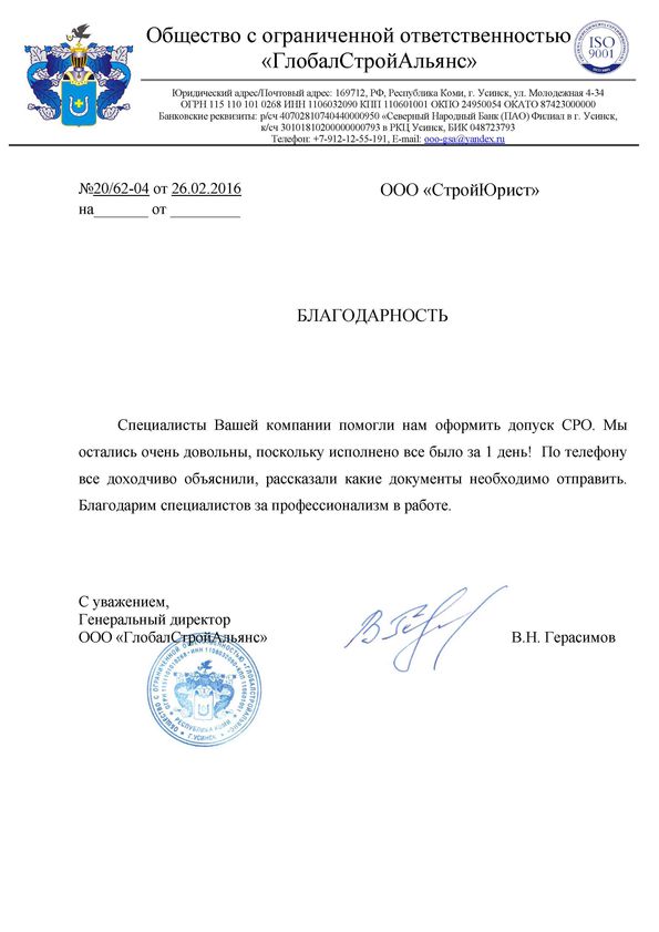 Отзывы клиентов "СтройЮрист" по вступлению в СРО в Братске
