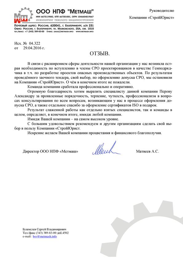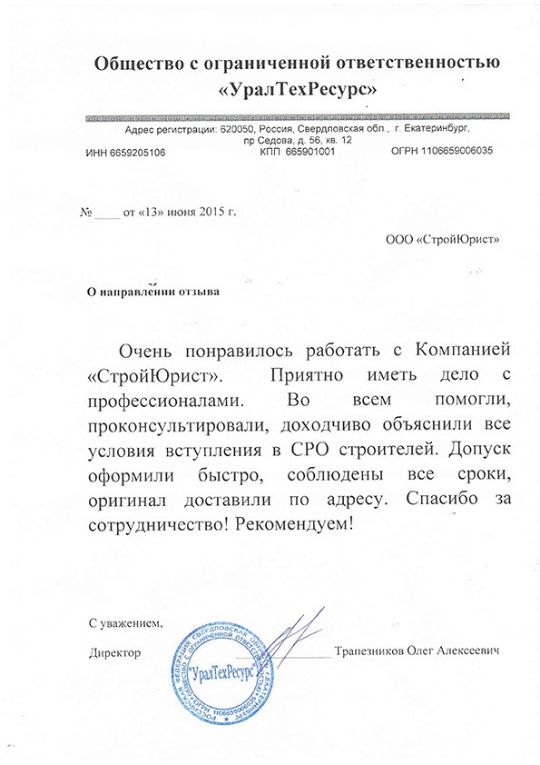 Отзывы клиентов "СтройЮрист" по вступлению в СРО в Братске