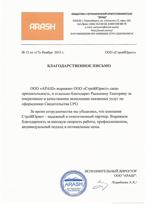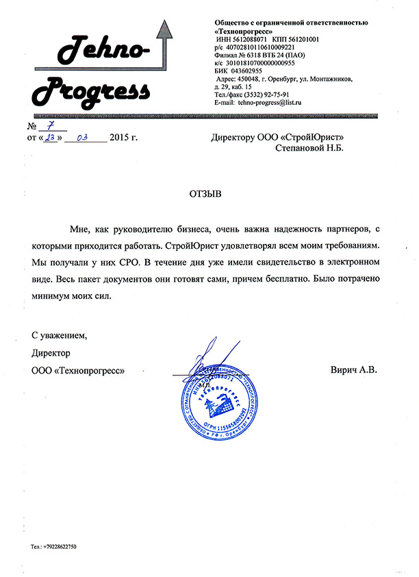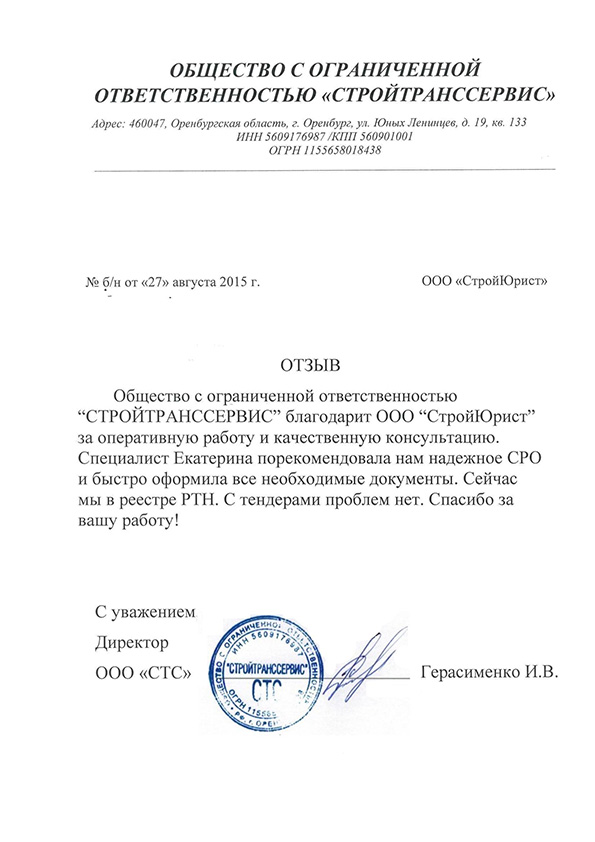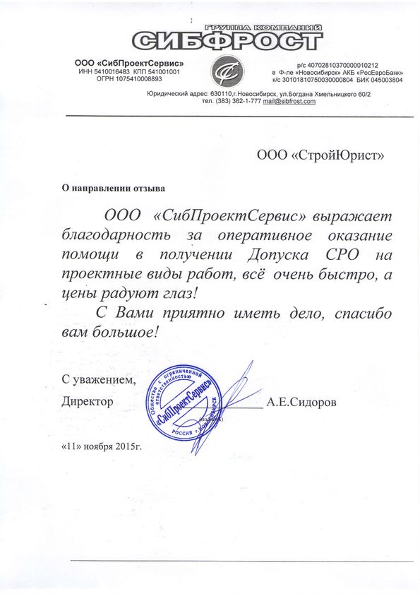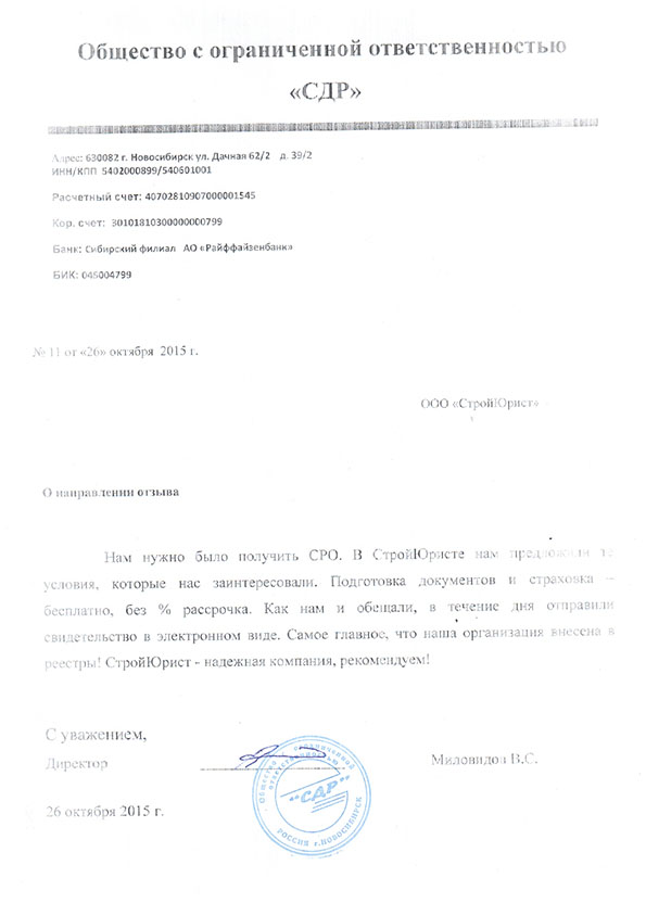 Отзывы клиентов "СтройЮрист" по вступлению в СРО в Братске