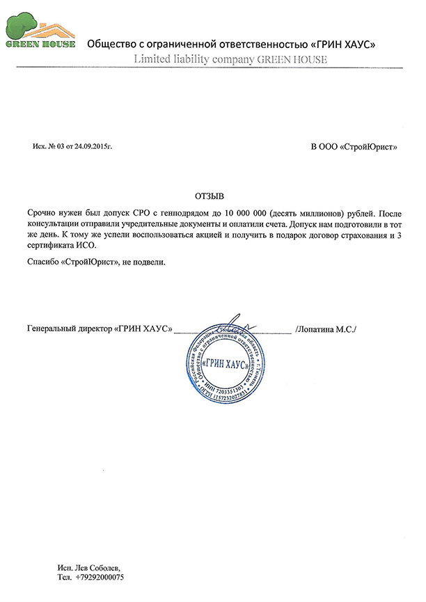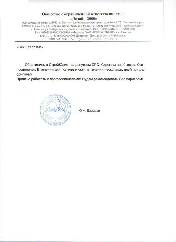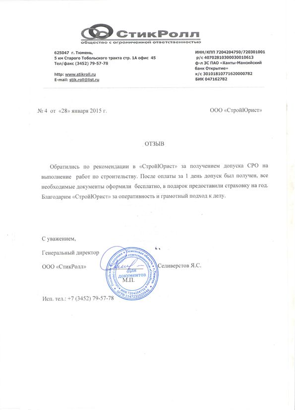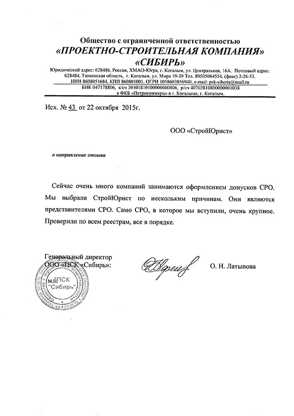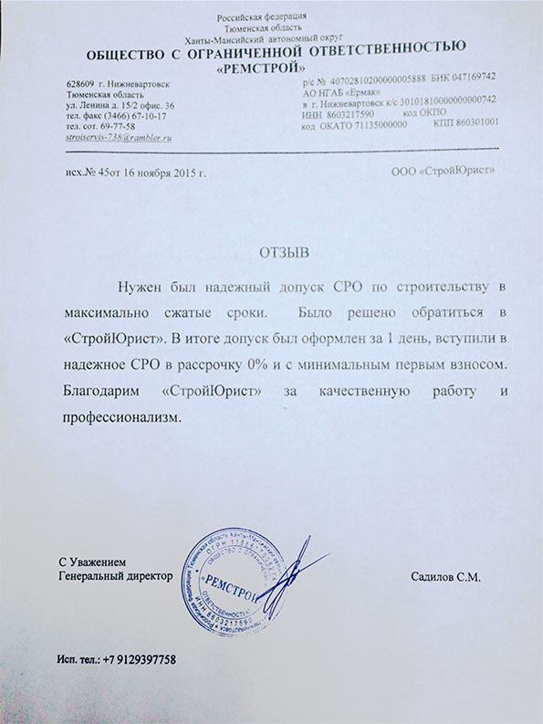 Отзывы клиентов "СтройЮрист" по вступлению в СРО в Братске