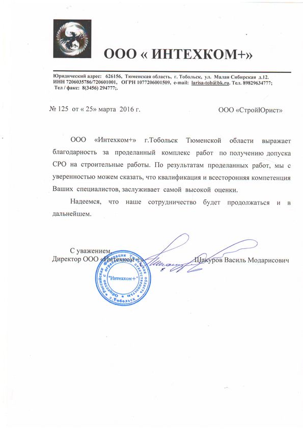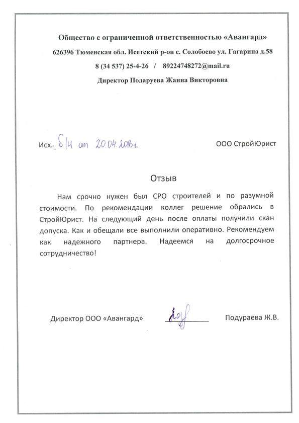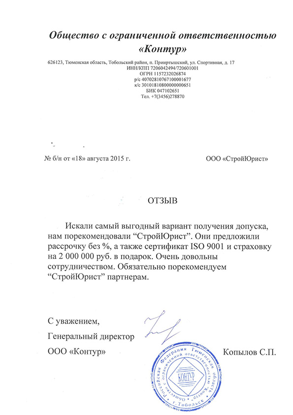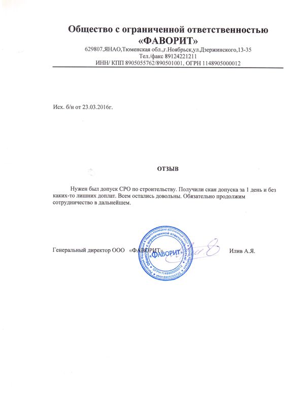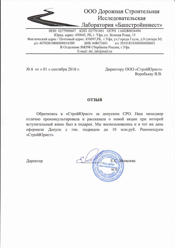 Отзывы клиентов "СтройЮрист" по вступлению в СРО в Братске