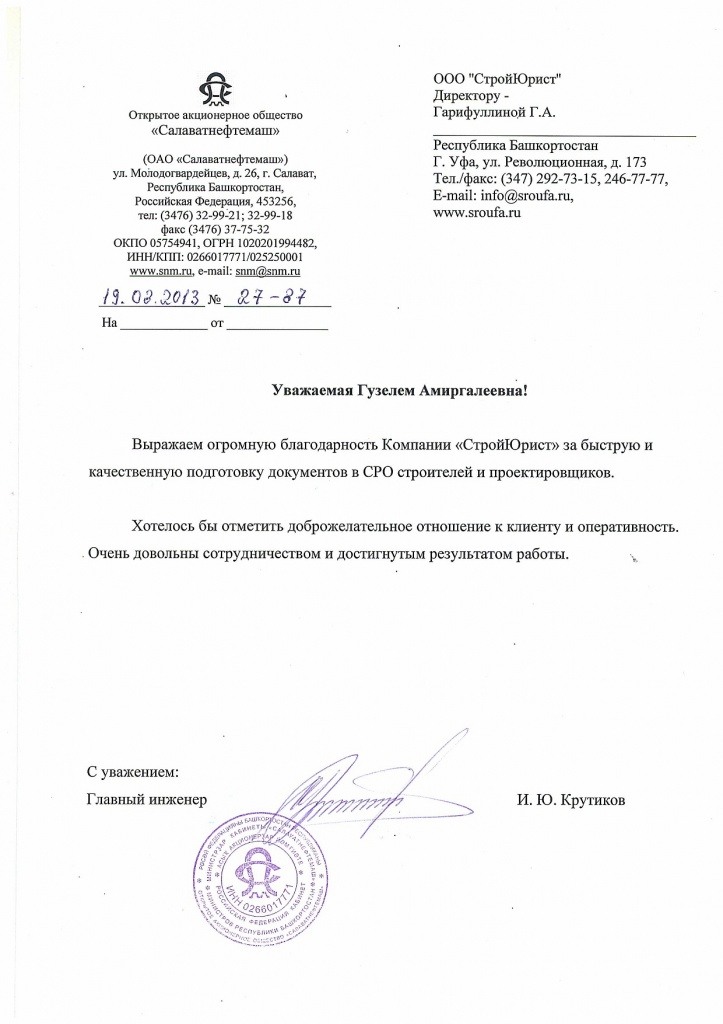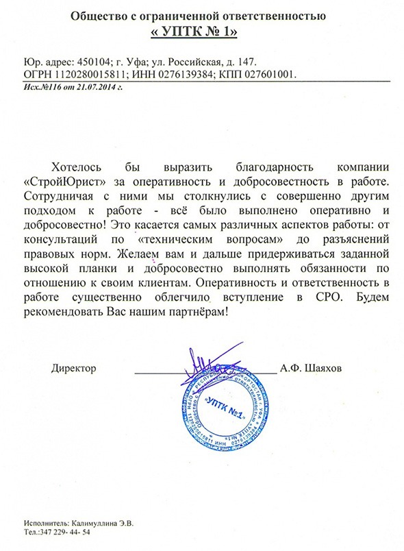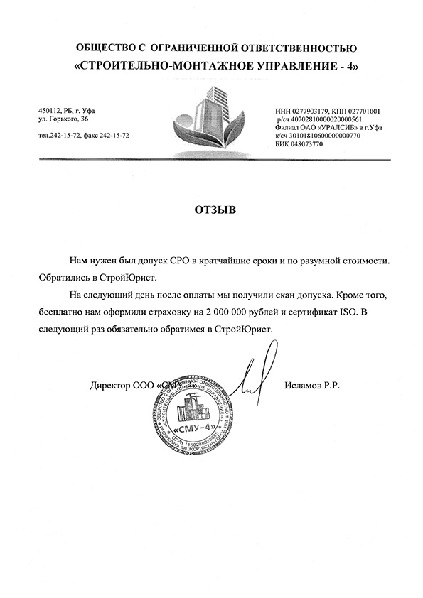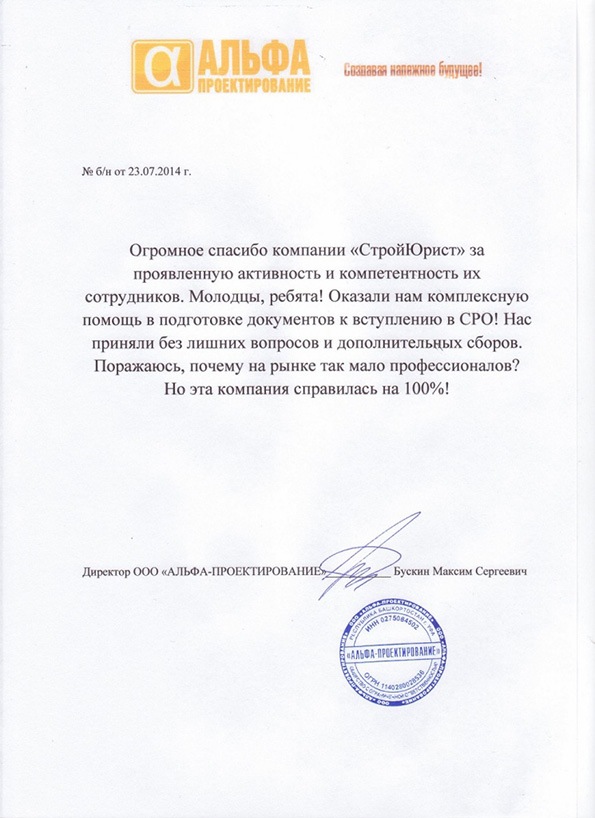 Отзывы клиентов "СтройЮрист" по вступлению в СРО в Братске