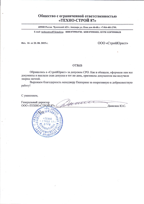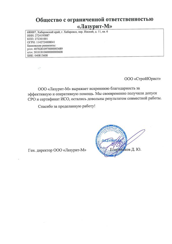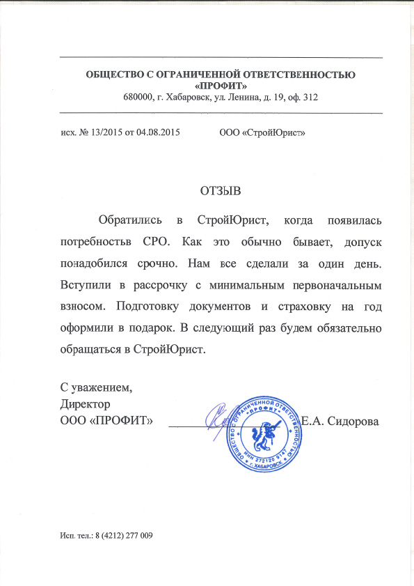 Отзывы клиентов "СтройЮрист" по вступлению в СРО в Братске