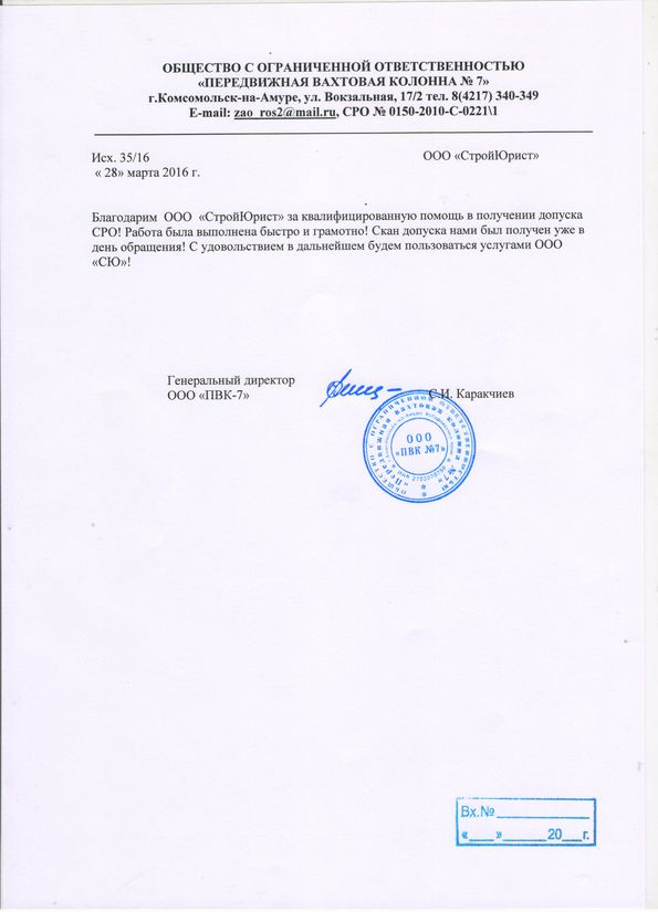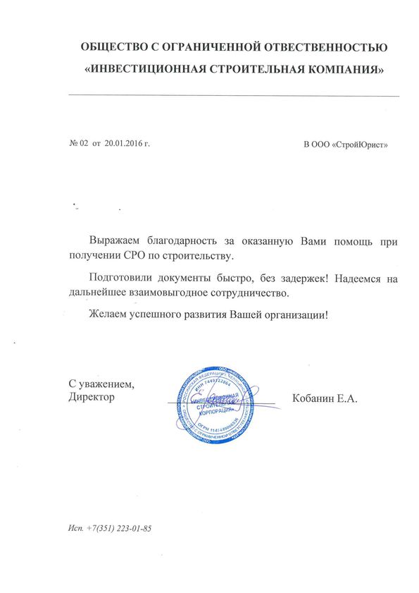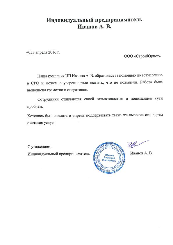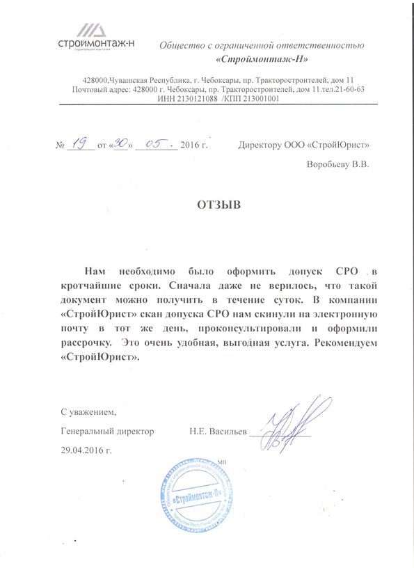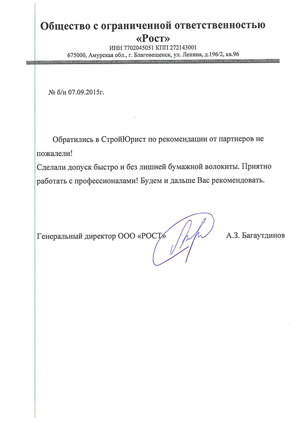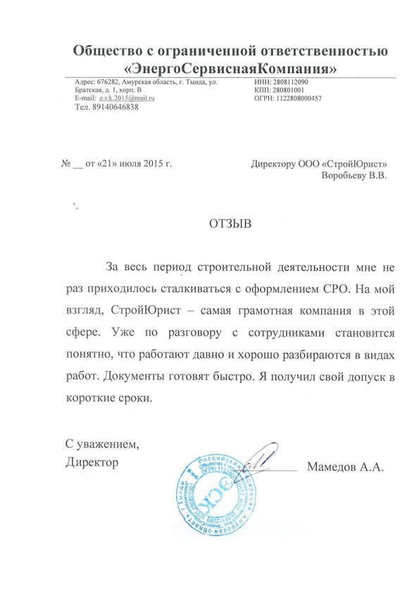 Отзывы клиентов "СтройЮрист" по вступлению в СРО в Братске