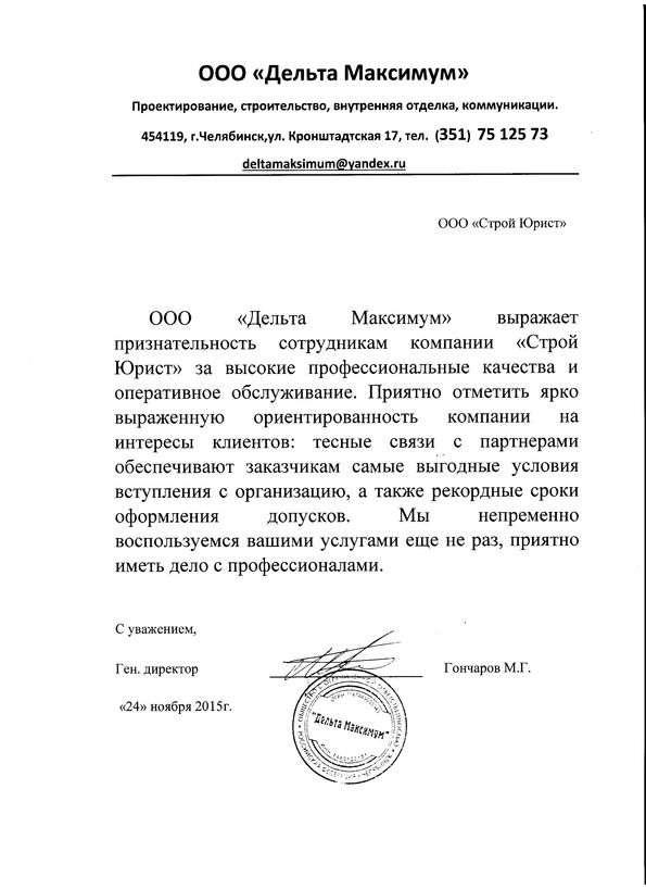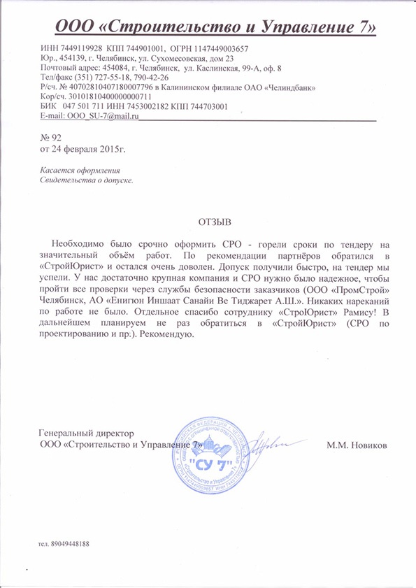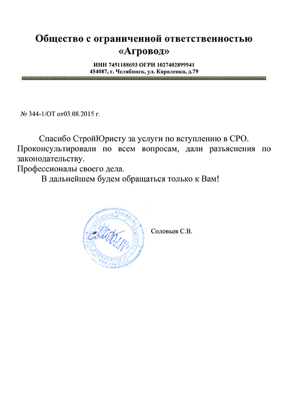 Отзывы клиентов "СтройЮрист" по вступлению в СРО в Братске