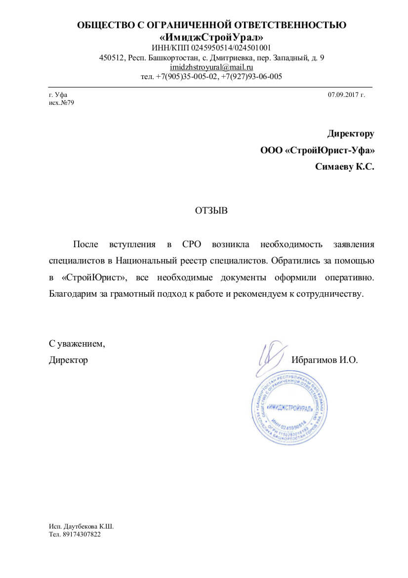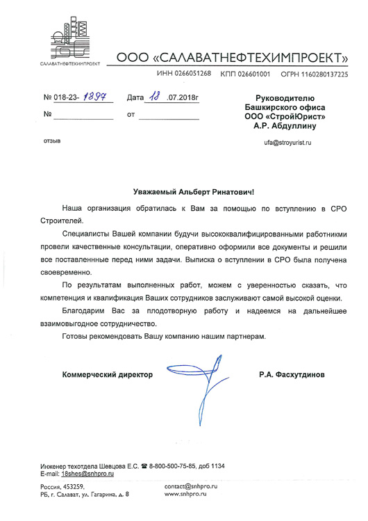 Отзывы клиентов "СтройЮрист" по вступлению в СРО в Братске