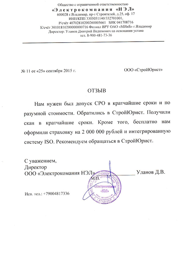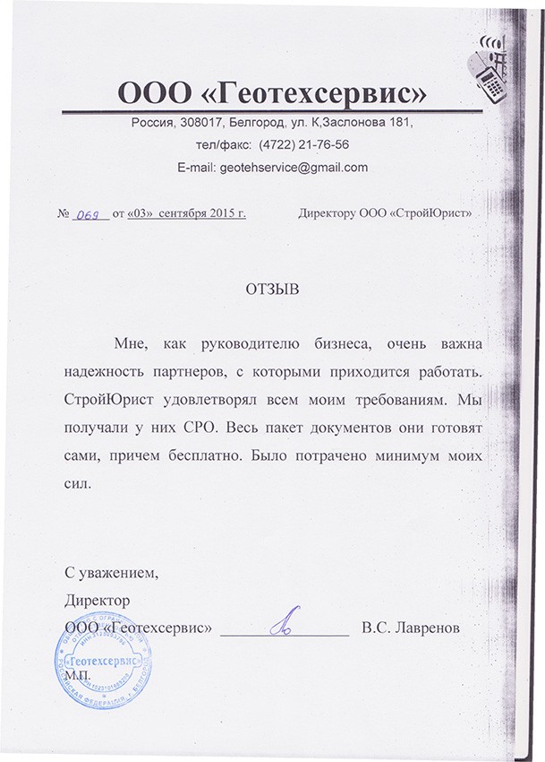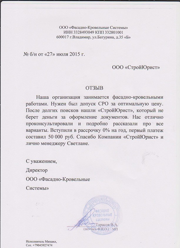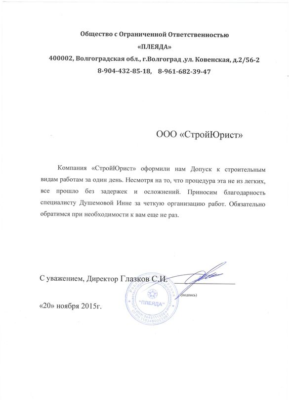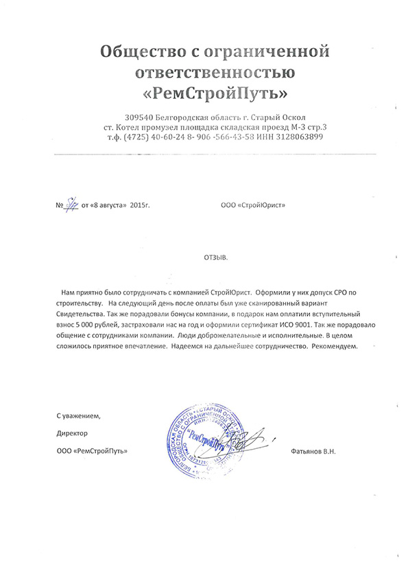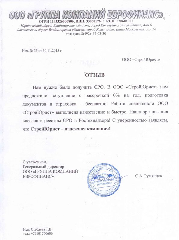 Отзывы клиентов "СтройЮрист" по вступлению в СРО в Братске